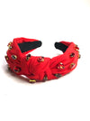 Be festive in Christmas red this holiday season. This ruby red headband is adorned with red rhinestones, perfect to elevate your holiday look. Ideal for the perfect monochromatic look and vibe.